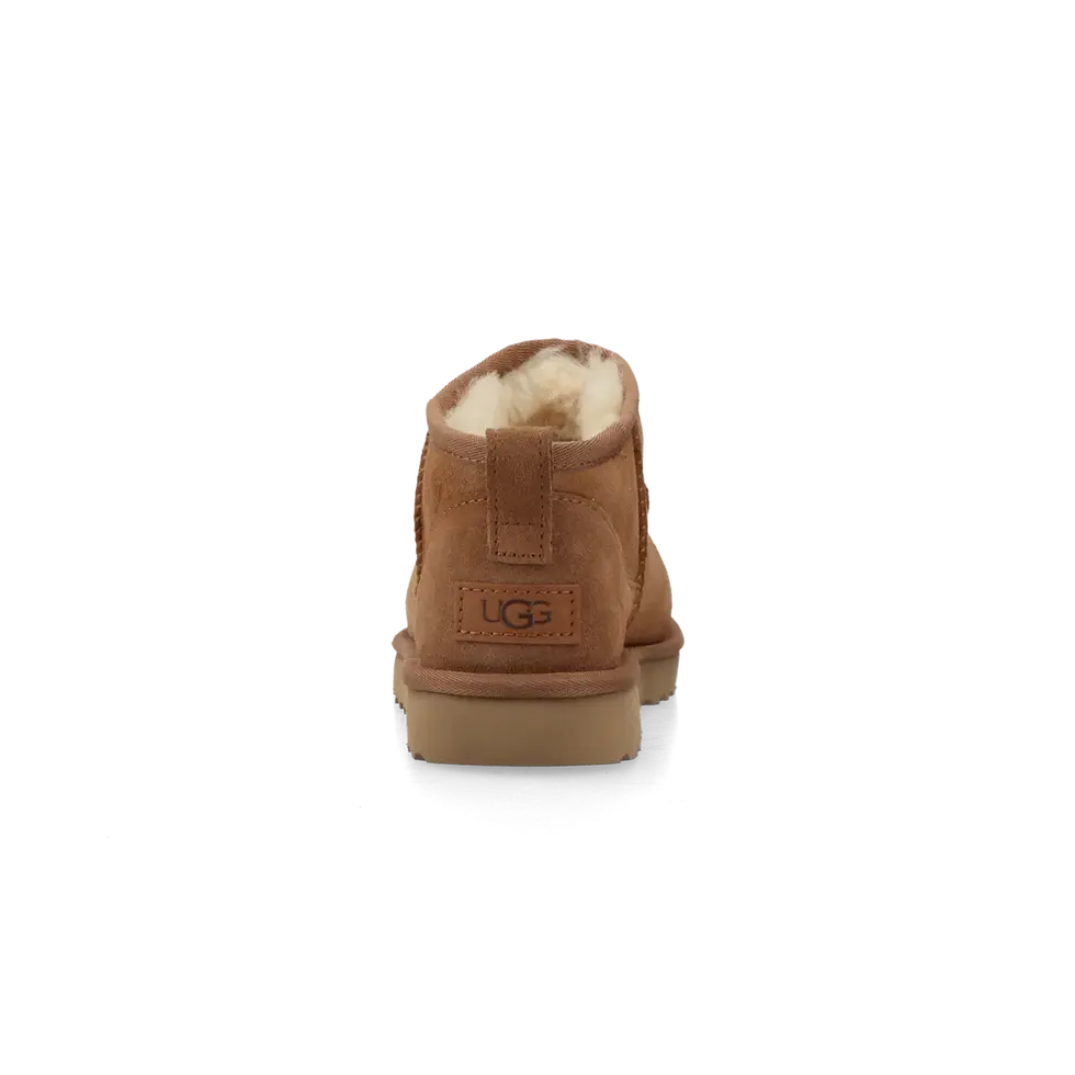 De UGG Classic Mini in kastanjebruin is een echte must-have voor herfst en winter: eenvoudig, comfortabel en iconisch. Met zijn iets vlakkere snit en smallere zool biedt dit model de vertrouwde UGG-look in een subtiele, strakke versie. De warme lamsvachtvoering zorgt voor perfect comfort, terwijl het hoogwaardige suède in klassiek kastanjebruin elke outfit compleet maakt.